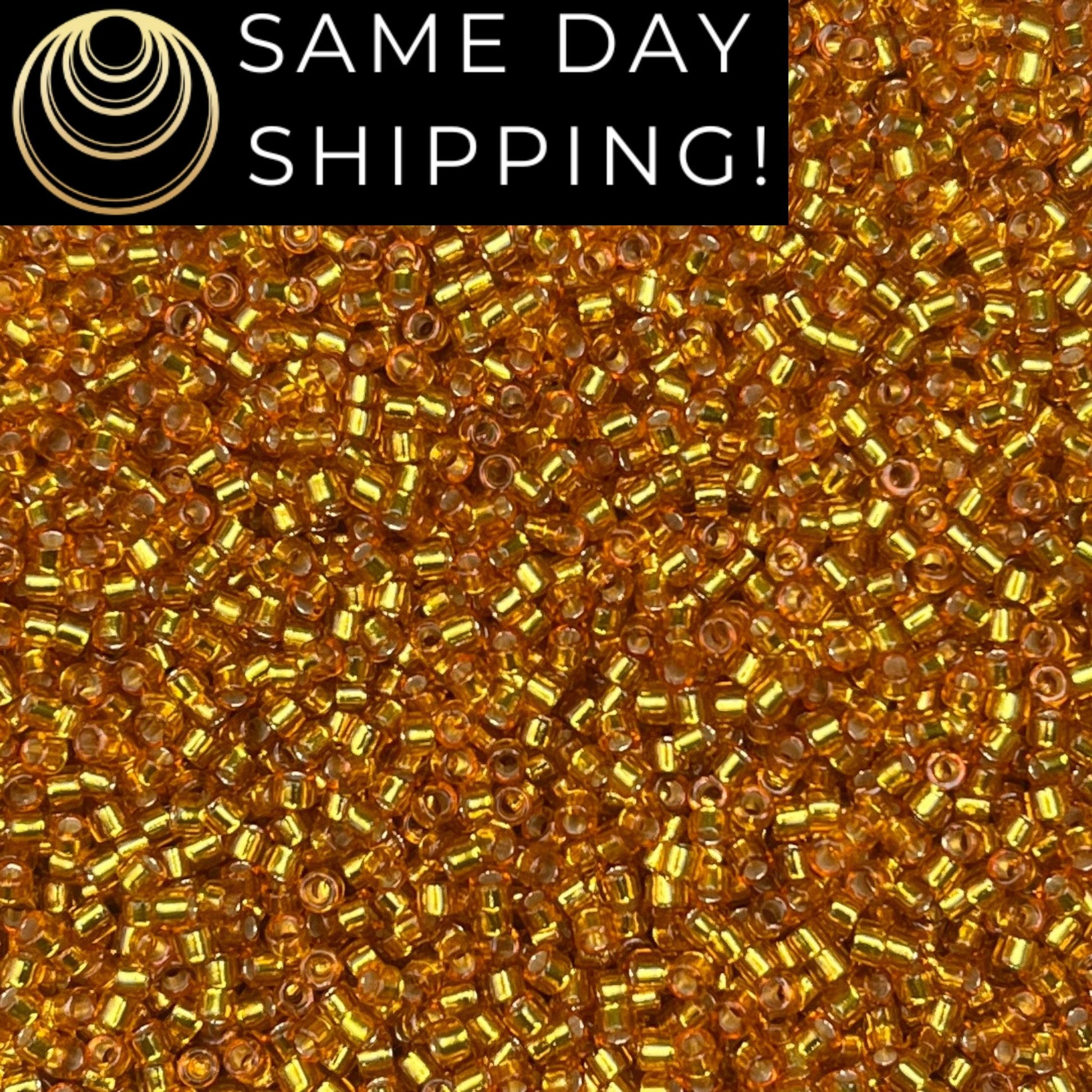 DB2157 (1 gram-20 grams) Miyuki Size 11/0 Delica Beads Duracoat Silver Lined Dyed Yellow Gold-Free Container! Same Day Shipping!