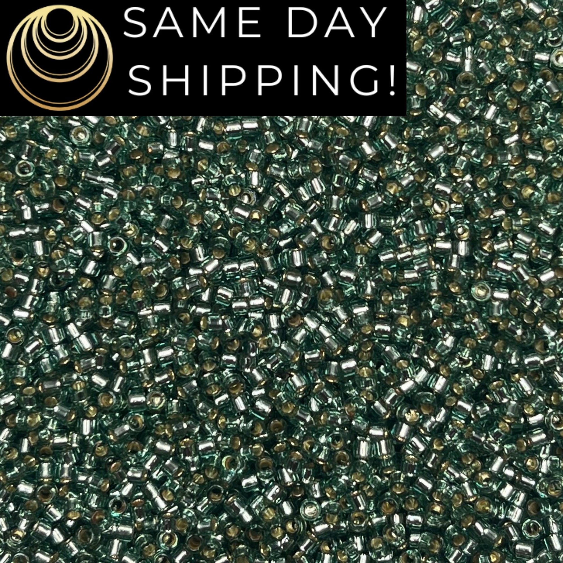 DB2165 (1 gram-20 grams) Miyuki Size 11/0 Delica Beads Duracoat Silver Lined Dyed Dark Sea Foam-Free Container! Same Day Shipping!