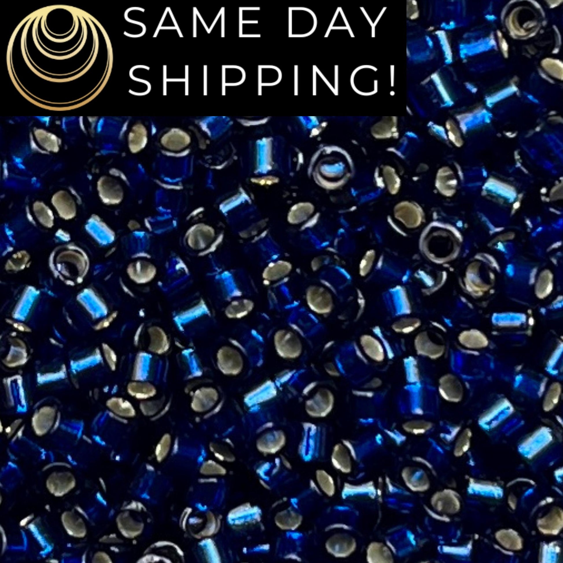 DB2191 (1 gram-20 grams) Miyuki Size 11/0 Delica Beads Duracoat Silver Lined Dyed Navy-Free Container! Same Day Shipping!