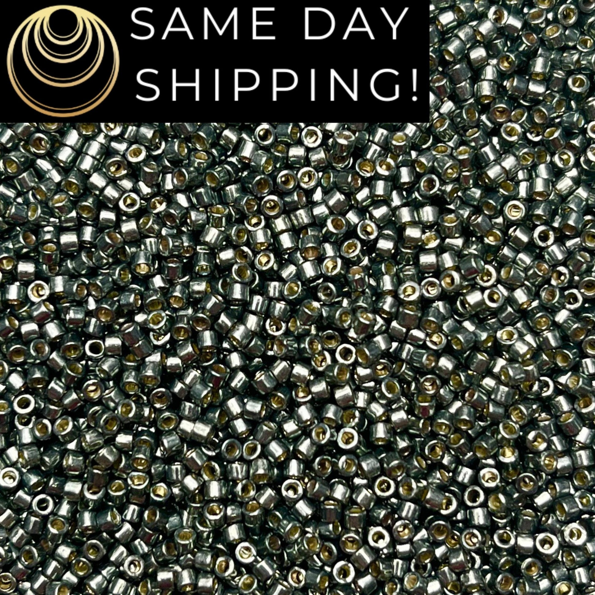 DB2512 (1 gram-20 grams) Miyuki Size 11/0 Delica Beads Duracoat Galvanized Dark Steel Green-Free Container! Same Day Shipping!