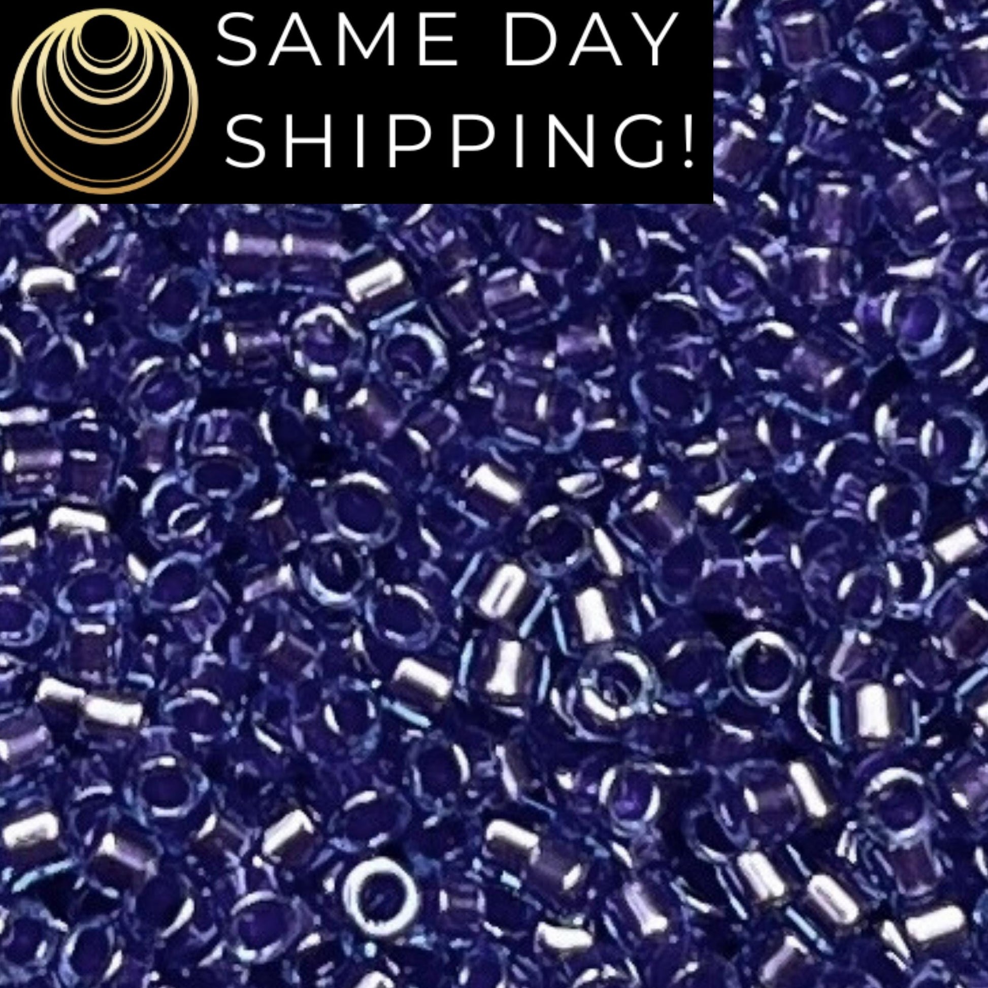 DB284 SAME DAY Shipping! 1 Gram-20 Grams Miyuki 11/0 Delica Beads Purple Lined Aqua Luster -Free Container! DB0284 DB-284
