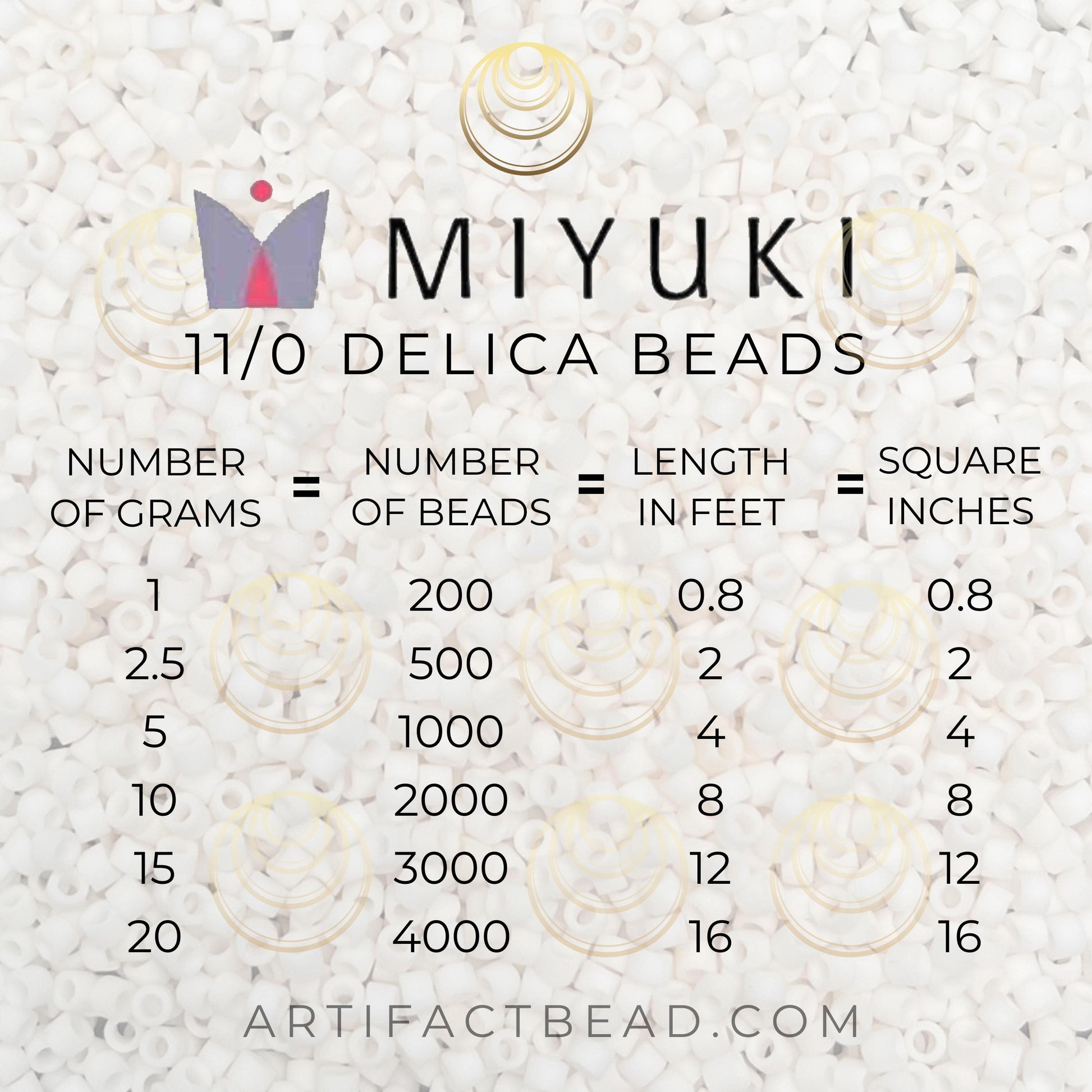 2.5 grams = 500 beads = 2 feet = 2 square inches
