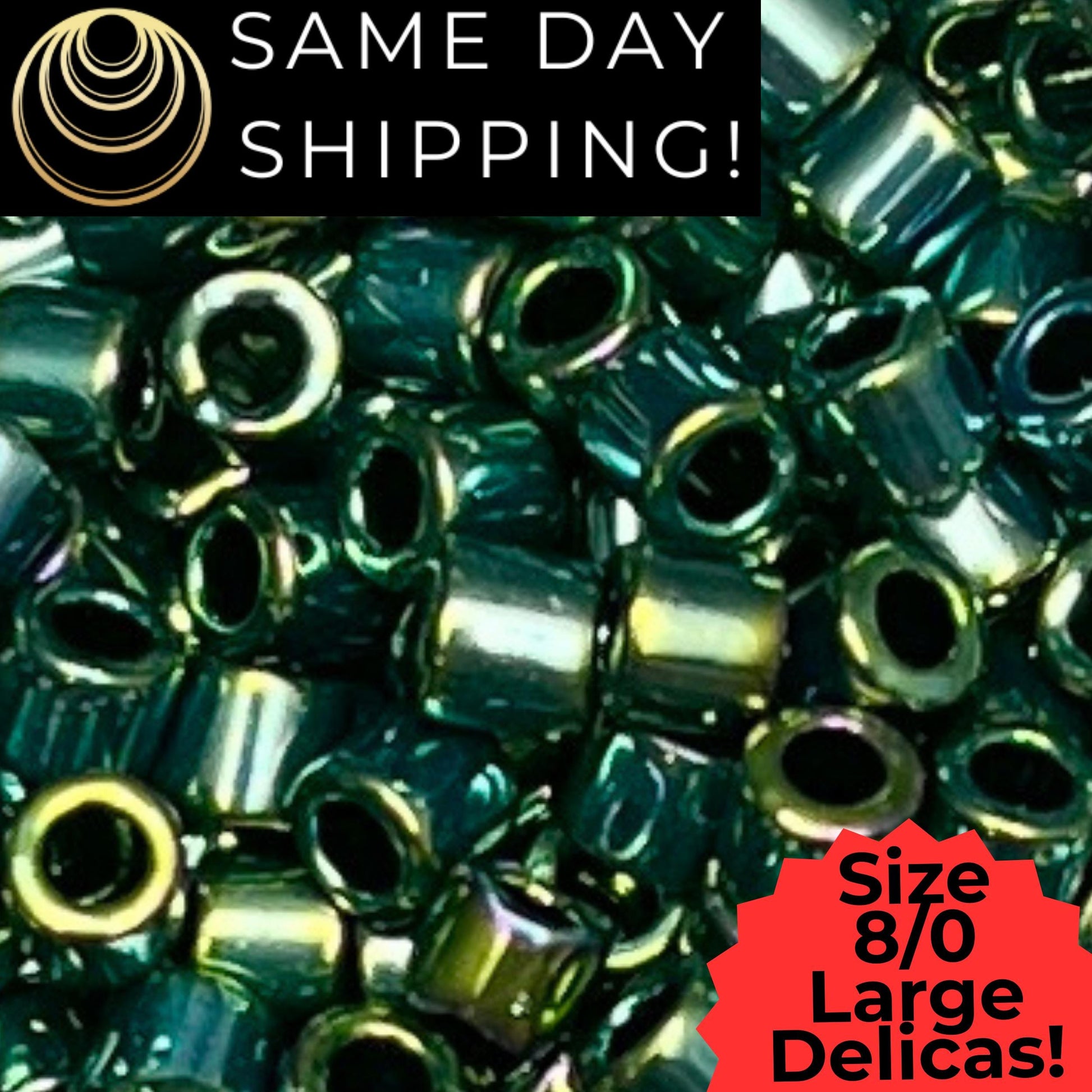 DBL0027 8/0 LARGE Miyuki Delica Beads Metallic Dark Green Iris
