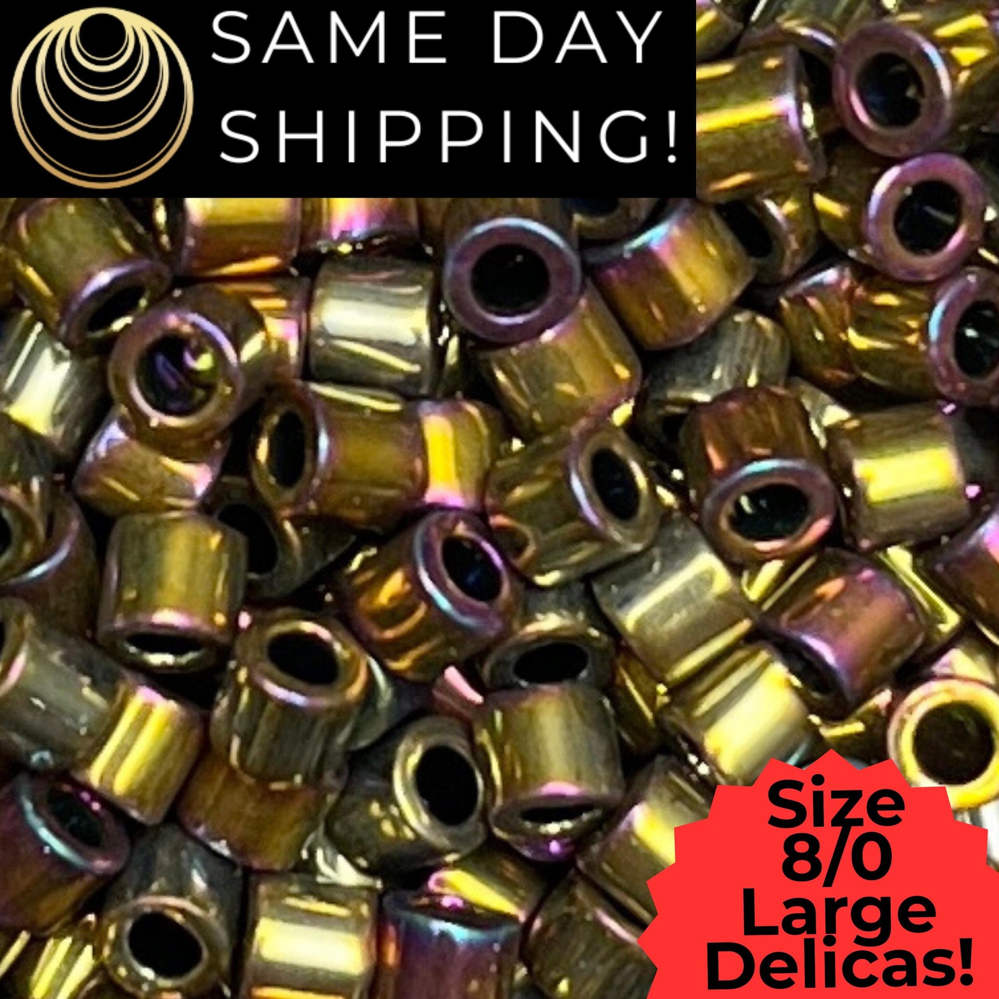DBL0029 8/0 LARGE Miyuki Delica Beads Metallic Nickel Plated Golden Rainbow